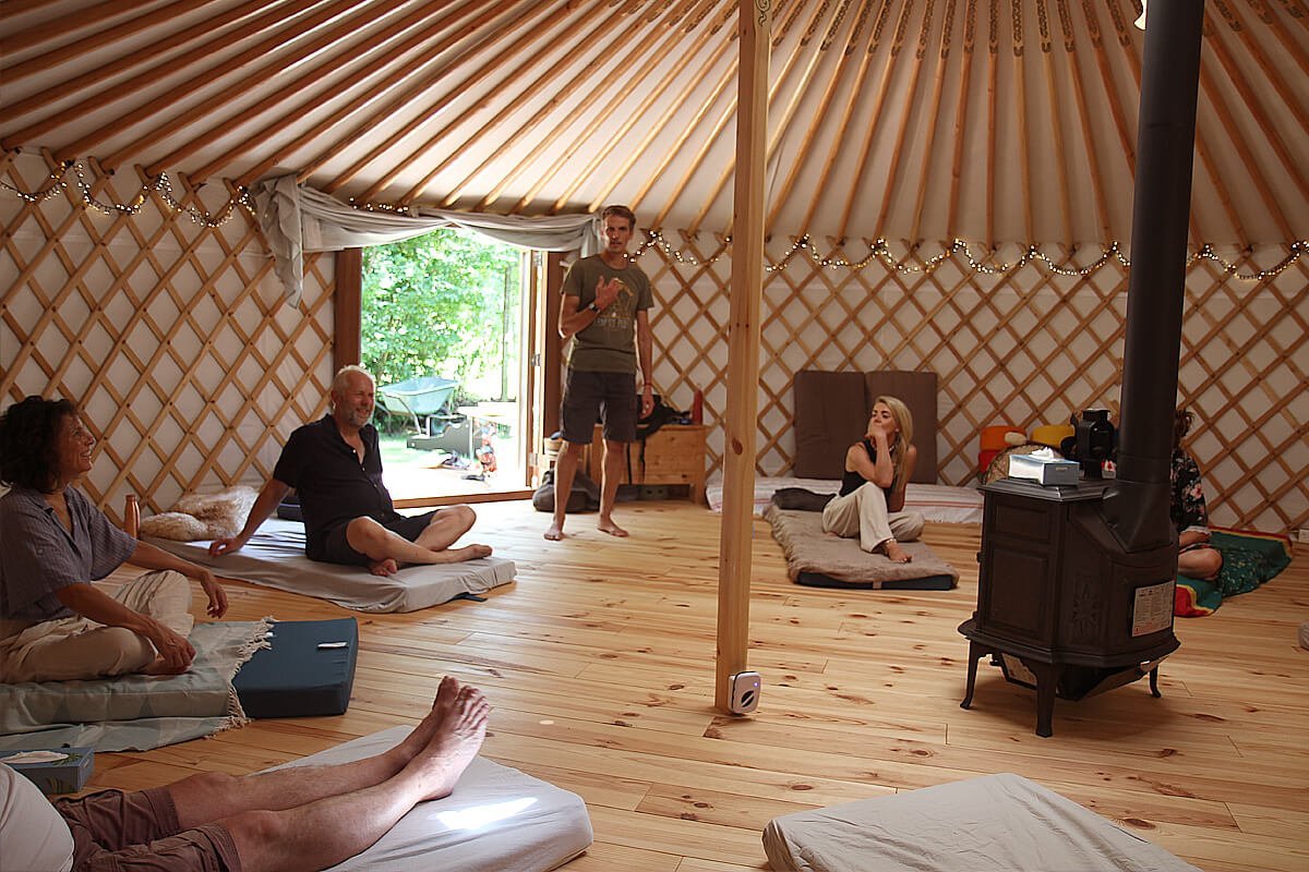 Zondag 10 augustus zijn 10 deelnemers bereid geweest de allereerste ademcirkel in onze kersverse yurt…